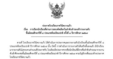 ประกาศรายชื่อผู้มีสิทธิ์มอบตัวเข้าศึกษาต่อชั้นมัธยมศึกษาปีที่ ๔ ห้องเรียนปกติ ปีการศึกษา ๒๕๖๙ 3 เมษายน 20265 เมษายน 2026 ประชาสัมพันธ์ Admin3 เมษายน 2026