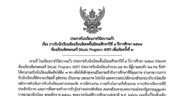 ประกาศการรับนักเรียนห้องเรียนพิเศษชั้นมัธยมศึกษาปีที่ ๔ ปีการศึกษา ๒๕๖๙ ห้องเรียนพิศษดนตรี (MSP) เพิ่มเติมครั้งที่ ๓ 24 เมษายน 202625 เมษายน 2026 ประชาสัมพันธ์ Admin24 เมษายน 2026