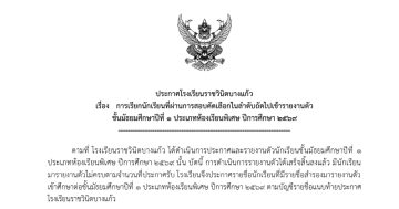 การรับนักเรียนห้องเรียนพิเศษชั้นมัธยมศึกษาปีที่ 1 ปีการ […]