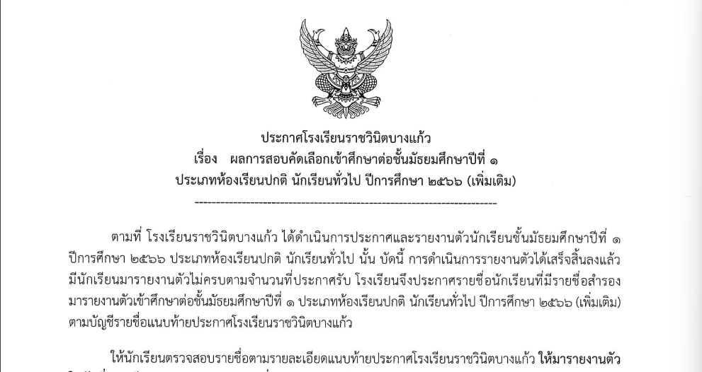 ผลการสอบคัดเลือกเข้าศึกษาต่อชั้นม.๑ ปีการศึกษา ๒๕๖๖ ประเภทห้องเรียนปกติ นักเรียนในเขตพื้นที่บริการ 28 มีนาคม 202328 มีนาคม 2023 ประกาศโรงเรียนราชวินิตบางแก้ว, ประชาสัมพันธ์ Admin28 มีนาคม 2023