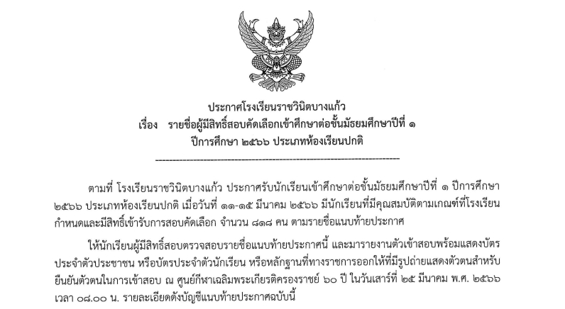 ผลการสอบคัดเลือกเข้าศึกษาต่อชั้น ม.๔ ประเภทห้องเรียนพิเศษ ปีการศึกษา ๒๕๖๖ (เพิ่มเติม) ครั้งที่ ๓ 13 มีนาคม 202313 มีนาคม 2023 ประกาศโรงเรียนราชวินิตบางแก้ว, ประชาสัมพันธ์ Admin13 มีนาคม 2023