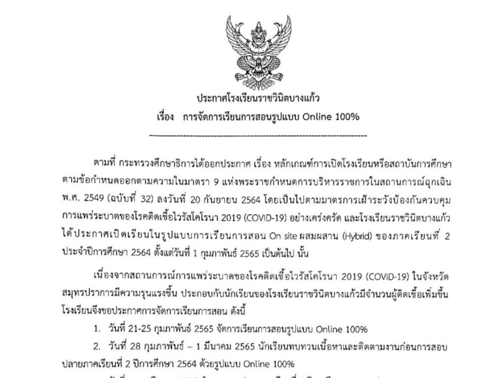 ประกาศโรงเรียนราชวินิตบางแก้ว การจัดการเรียนการสอนรูปแบบ Online 100% 20 กุมภาพันธ์ 202220 กุมภาพันธ์ 2022 Admin20 กุมภาพันธ์ 2022